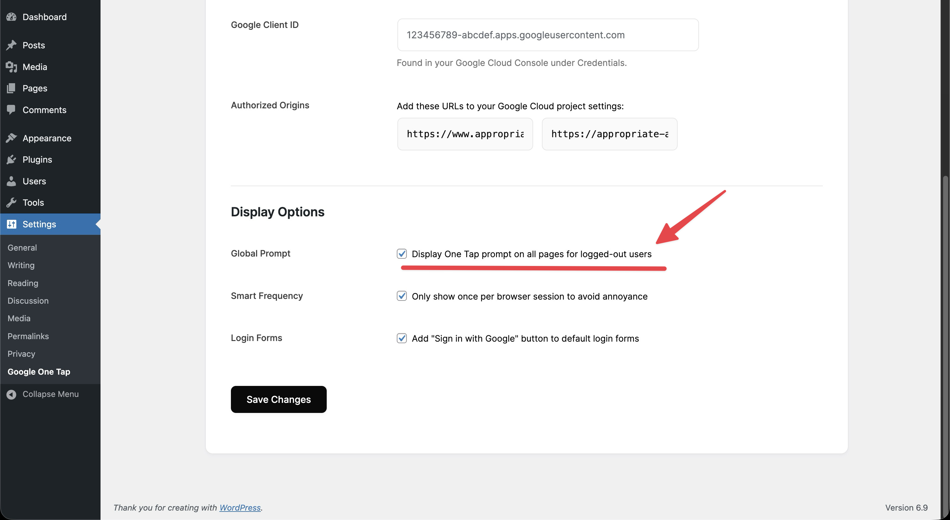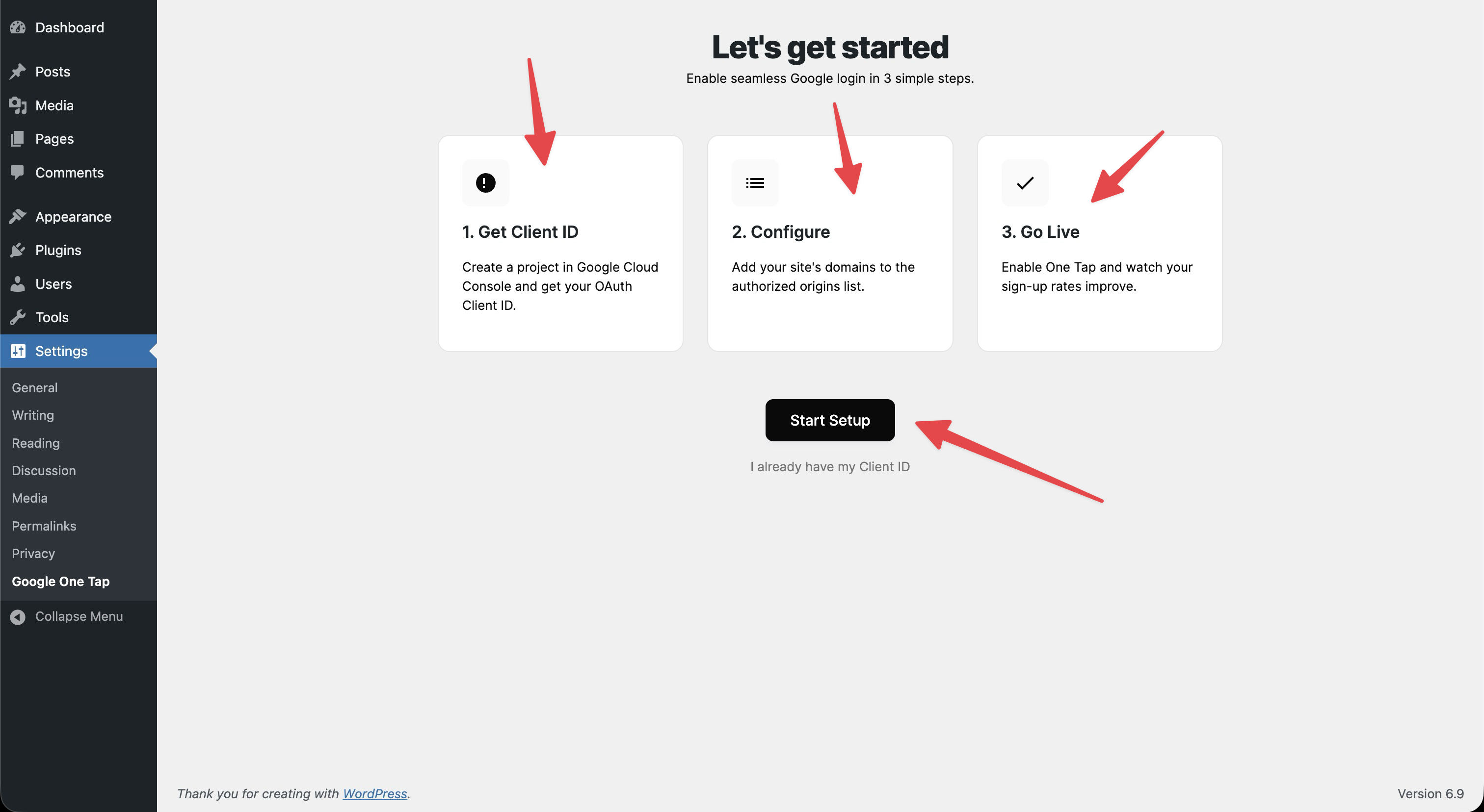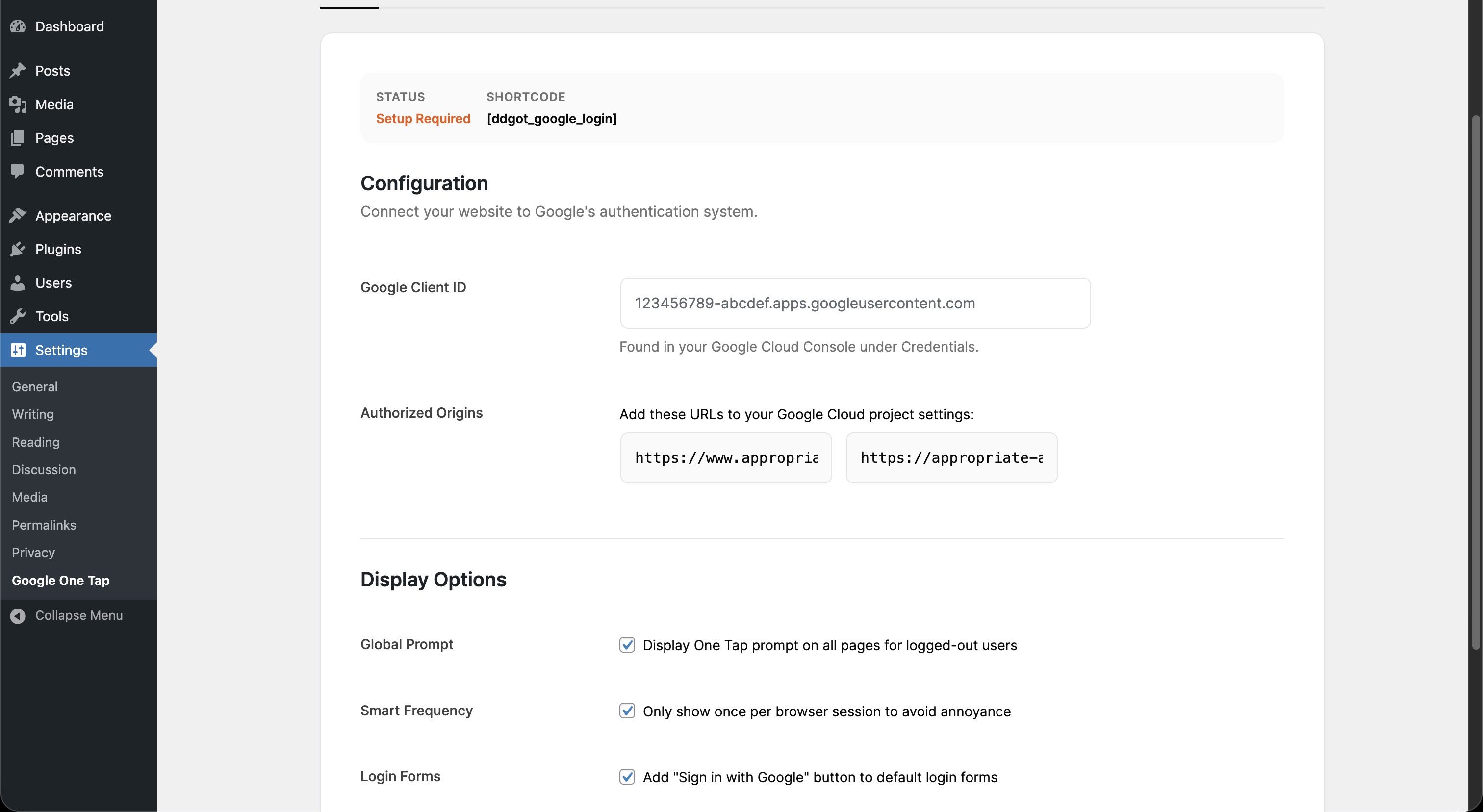 - Go to Settings > Google One Tap and paste your Google Client ID.