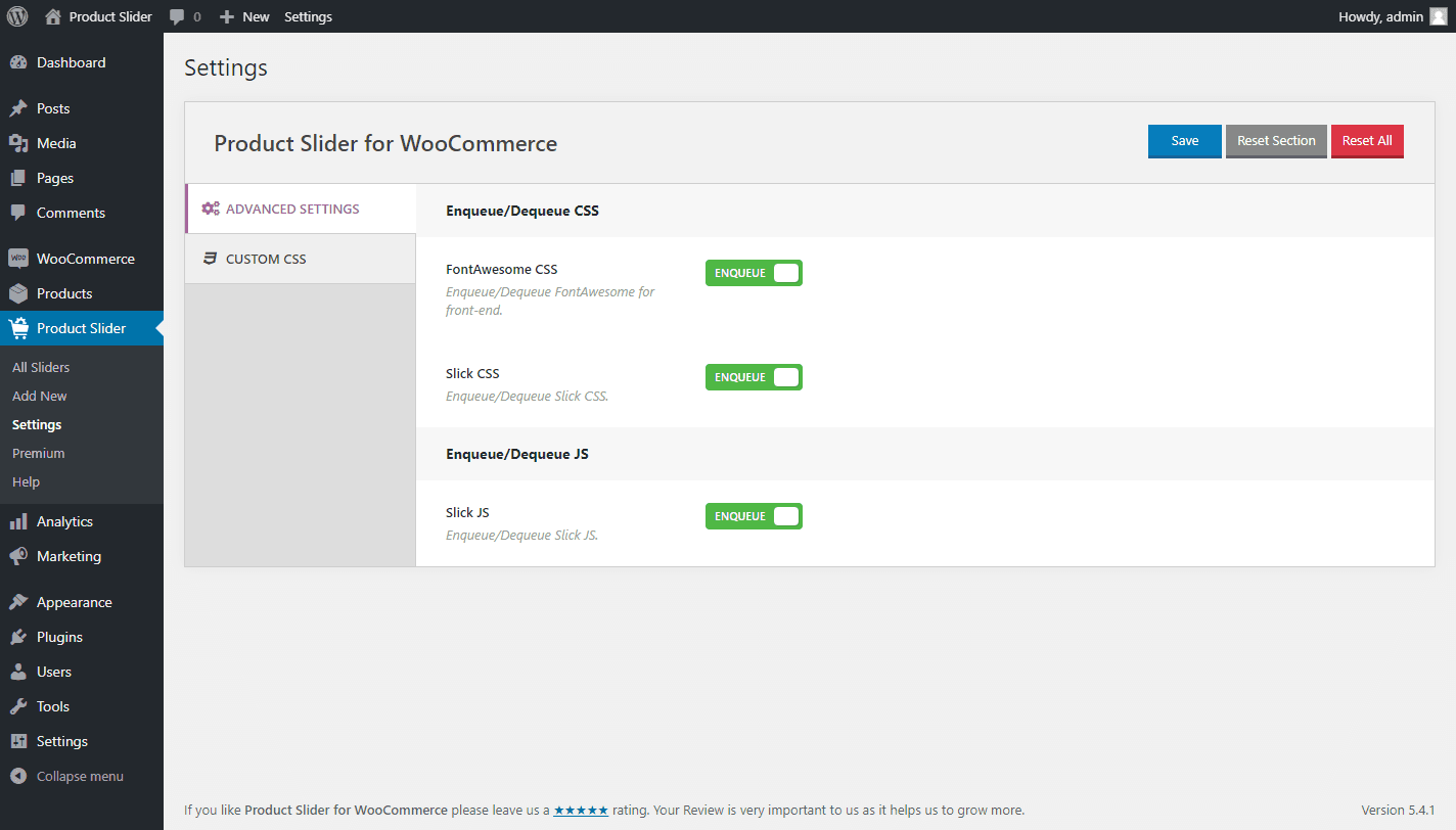 After activating the plugin, you will see the “Product Slider” menu on your WordPress admin panel.